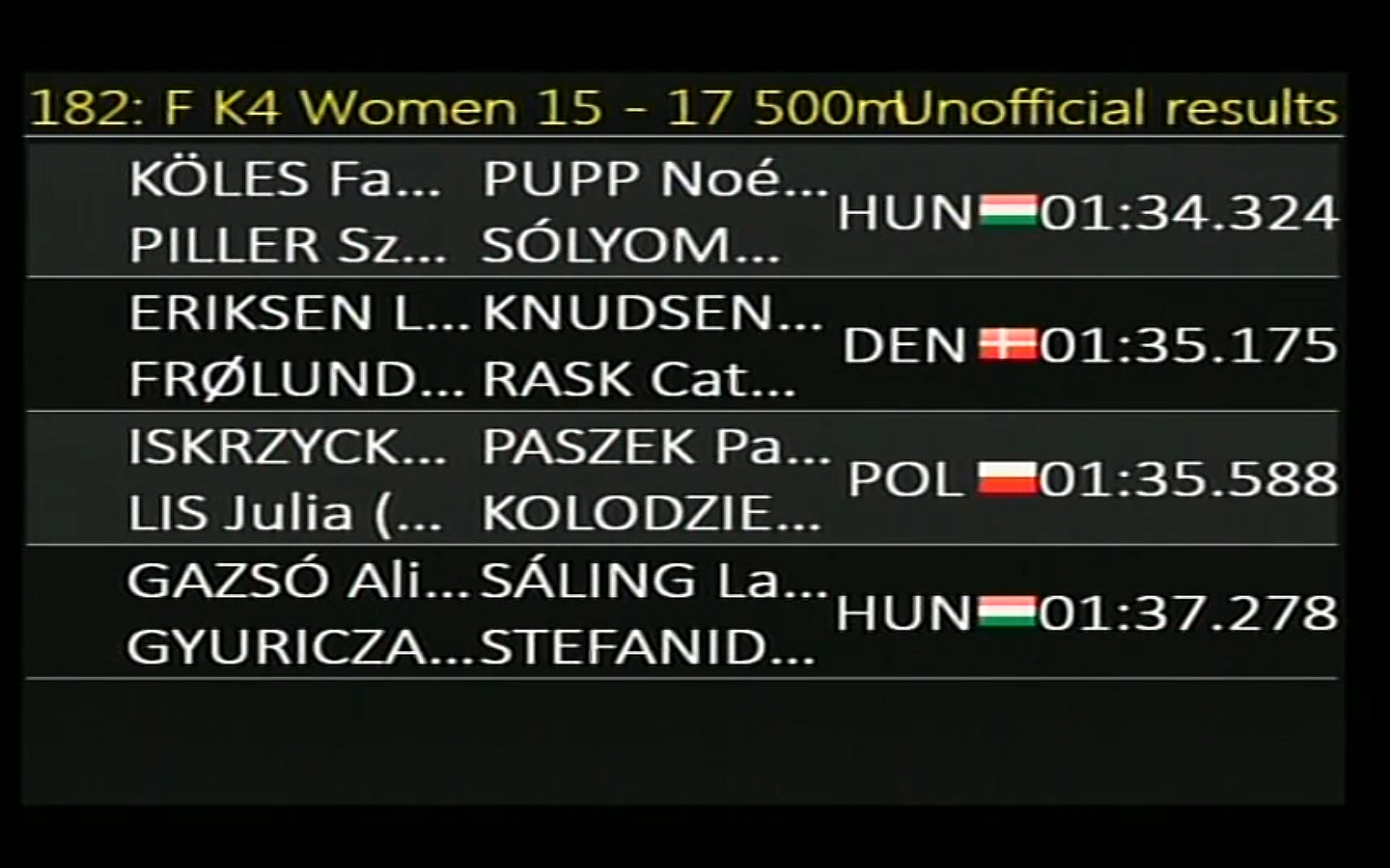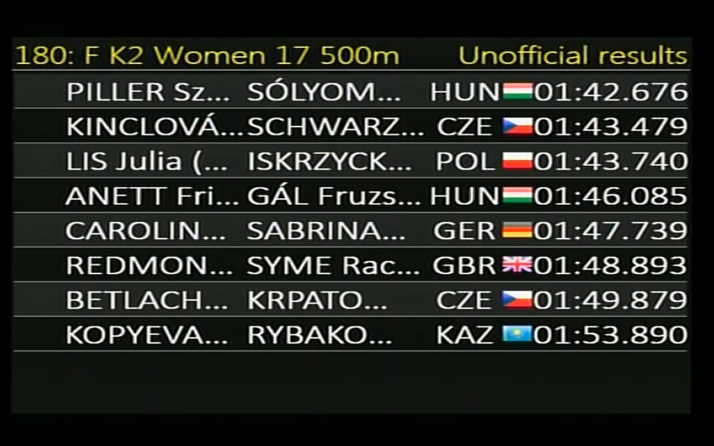 Egy óra múlva már ismét „párjával”, Dórival együtt ültek a hajóban, hiszen jött a női K2 200 méter, ahol egy igen szoros befutót követően nyerték meg a futamot, így bejutottak a fináléba. A döntőben a második rajt sikerült csak, de ez nem zavarta meg duónkat és magabiztosan, végig vezetve nyerték meg a futamot.